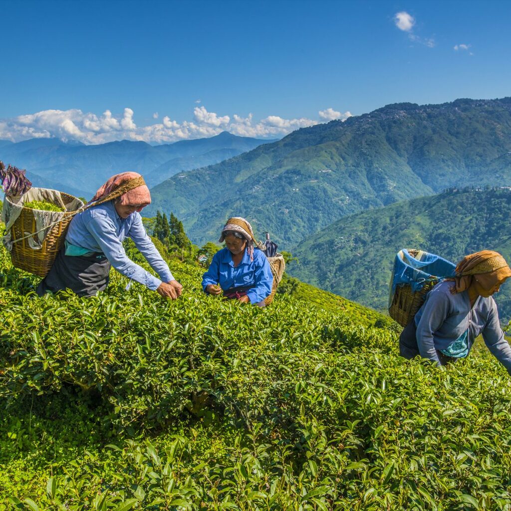Tea plantations rolling over hills in patterns that seem almost too precise to be natural.